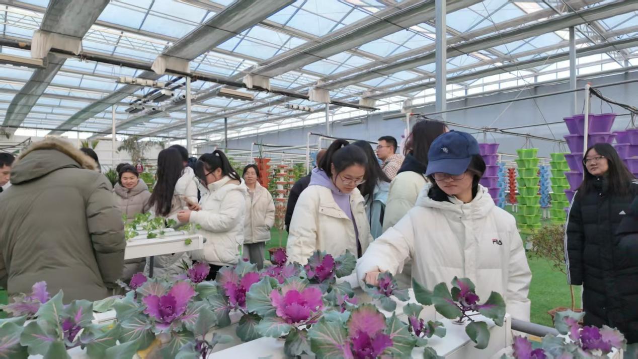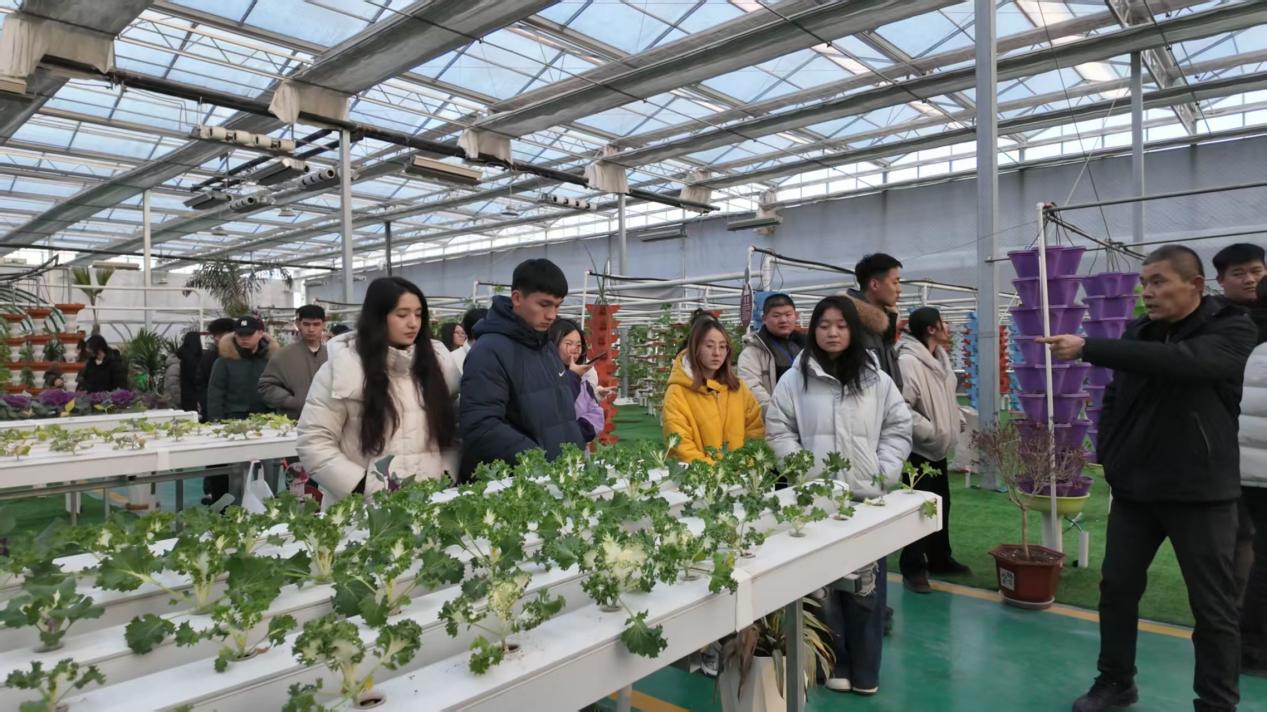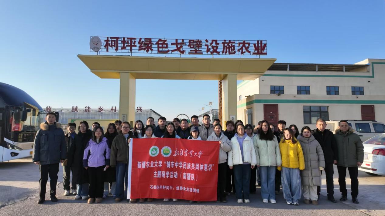 第二日同学们打卡绿色戈壁设施农业产业园,昔日盐碱地如今已是生机盎然。一片片排列整齐的银白色温室大棚在阳光下熠熠生辉,南北方农作物在此茁壮成长,尤以“柯坪番茄”最为出众——品质优良、绿色健康,通过电商渠道远销全国,亲民价格收获众多消费者青睐。更令人动容的是,园区积极履行社会责任,为残疾人提供专业技能培训与稳定就业岗位,在产业发展中传递民生温度,绘就出科技进步、产业兴旺与民族团结交融的动人画卷。