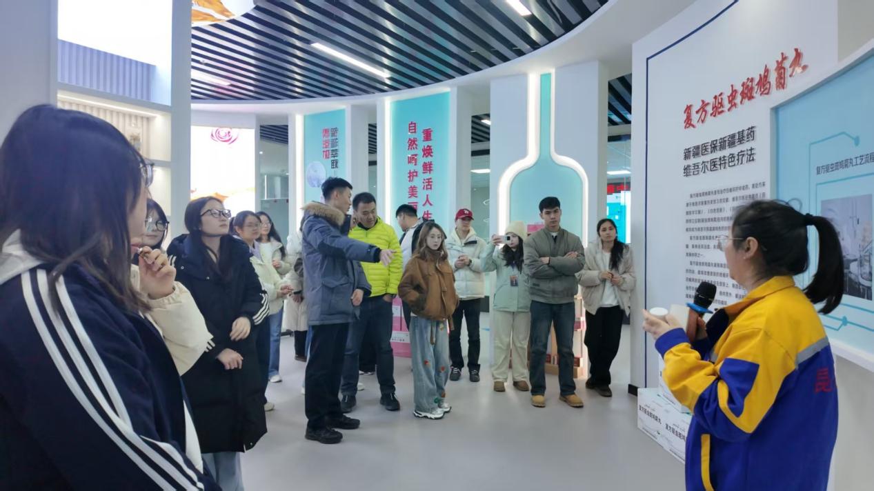 随后探访喀什昆仑维药,开启一场民族医药的探索之旅。现代化生产车间内,传统维药配方与现代科技深度融合,标准化生产线高效运转,智能化检测设备严格把控每一道关卡,从原料提取到制剂成型的全流程清晰可见。工作人员细致讲解维药的历史传承、原料选材与传统炮制工艺,学子们在聆听传承故事、观摩生产过程中,既领略到民族医药的深厚文化底蕴,更见识到传统产业与现代工业结合的硬核实力,对南疆特色产业的多元化发展有了更全面的认知。