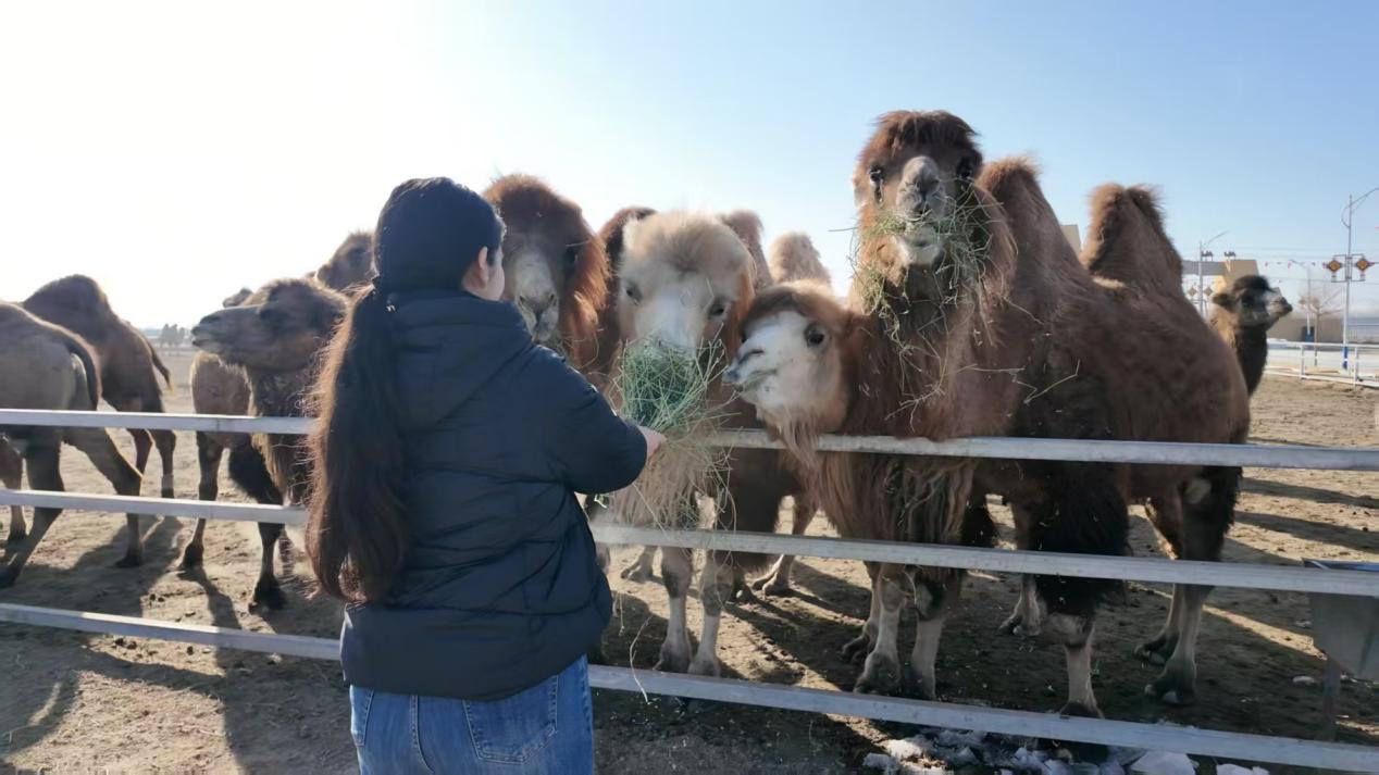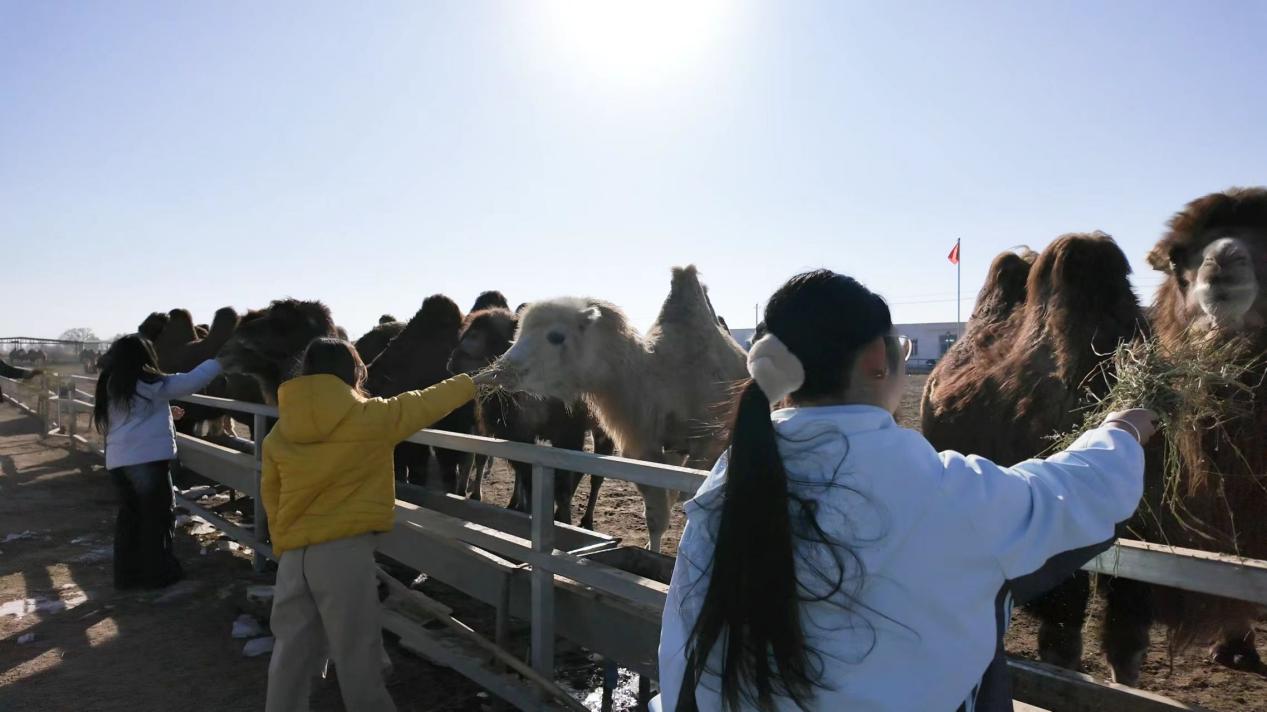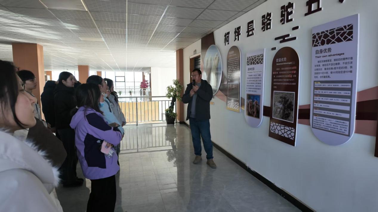 走进万峰骆驼养殖基地,便解锁了“骆驼之乡”的营养宝藏。柯坪骆驼生长在优越的自然环境中,产出的驼奶富含多种对人体有益的营养成分,同学们通过亲身体验骆驼互动、参与驼奶知识问答,沉浸式探寻驼奶的营养奥秘。