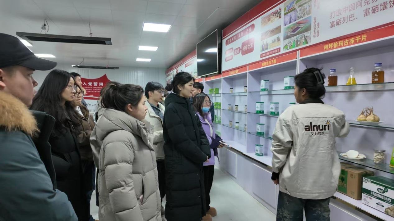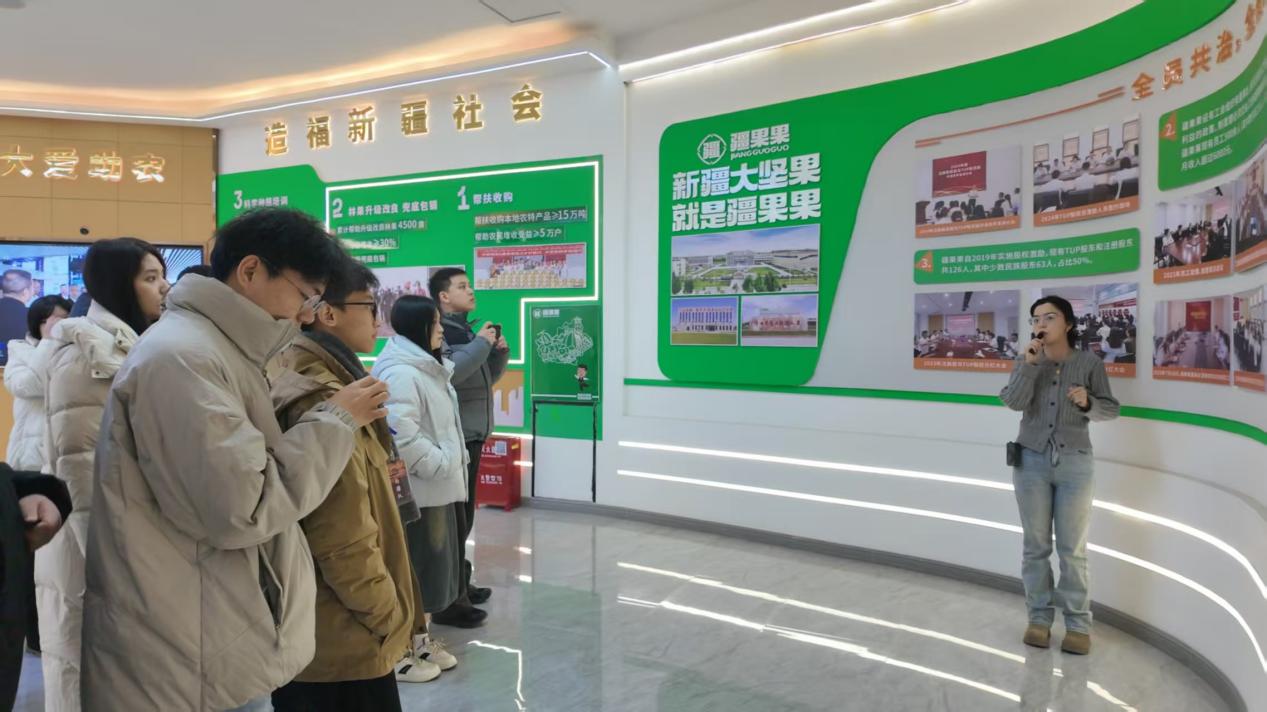 奔赴喀什疆果果基地,浓郁的果香甜气扑面而来。作为南疆农产品产业化的标杆企业,这里充分依托当地日照充足、水土优质的天然优势,将新鲜果品经过分拣、清洗、晾晒、无菌精细化加工、标准化包装等全流程处理,变身果干、果酱等货架好物。学子们循着生产线一路探访,亲眼见证一颗鲜果的“价值升级”之路,深刻体会到农产品深加工带来的经济价值与市场活力。